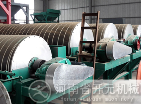 磁鐵礦經(jīng)過(guò)洗凈和分級(jí)的礦物混合料在經(jīng)過(guò)磁選機(jī)時(shí),由于各種礦物的比磁化系數(shù)不同,經(jīng)由磁力和機(jī)械力將混合料中的磁性物質(zhì)分離出來(lái)。