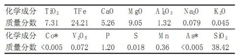 原礦的主要化學成分分析結果見表1,鈦物相分析結果見表2。